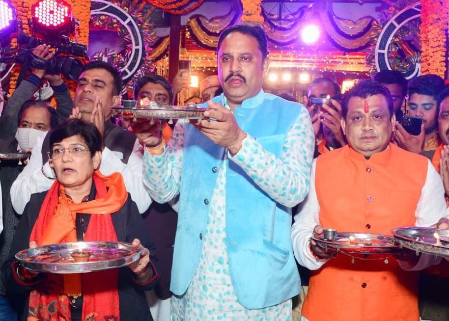 देवास। प्रतिवर्षानुसार इस वर्ष भी संस्था सार्थक द्वारा 4 जनवरी मंगलवार को खेड़ापति मंदिर पर फूल बंगला, भजन संध्या एवं महाआरती का आयोजन किया गया। संस्था संयोजक दीपेश कानूनगो ने बताया कि खेड़ापति मंदिर पर फूल बंगले में गेंदा, सेवंती, कमल, गुलाब, रजनीगंधा सहित 20 अलग अलग किस्मों के 10 क्विंटल फूलों का उपयोग किया गया। फूल बंगले को तैयार करने में लगभग 15 घंटे का समय लगा। भजन संध्या में भजन गायक विजय चौहान ने बाबा के एक से सुमधुर भजनों की प्रस्तुति देकर भक्तों को बांधे रखा तथा झूमने पर मजबूर कर दिया। कार्यक्रम में पधारे मुख्य अतिथि देपालपुर विधायक विशाल पटेल का संस्था संयोजक दीपेश कानूनगो द्वारा स्मृति चिन्ह देकर सम्मान किया गया। श्री पटेल ने श्री खेड़ापति सरकार की आरती कर आशीर्वाद लिया। आपने कहा कि यहां पर मुझे अद्भुत संगम देखने को मिला कि यहां पर एक ही छत के नीचे कई देवी देवताओ के दर्शन हुए। श्री पटेल ने संस्था के पदाधिकारियो को बधाई देतेे हुए कहा कि आपने समाज को एकजुट करनेे का जो सार्थक प्र्रयास किया है वह सराहनीय है। आपने तथा फूल बंगला एवं आयोजन की सराहना की। संस्था अध्यक्ष विशाल यादव ने बताया कि महाआरती के पश्चात भक्तों को महाप्रसादी का वितरण किया गया तथा आयोजन के दौरान कोरोना प्रोटोकाल के तहत भक्तोंं को मास्क वितरित किए गए। इस अवसर पर भगवानसिंह चावड़ा, पं. रितेश त्रिपाठी, रेखा वर्मा, गुरूचरण सलूजा, विक्रम पटेल, प्रयास गौतम, प्रदीप चौधरी, रोशन रायकवार, हिम्मतसिंह चावड़ा, सुधीर शर्मा, दिग्विजयसिंह झाला, राजेश राठोर, अनिल गोस्वामी,चंद्रपालसिंह सोलंकी, जयराम मालवीय, संजय रेकवाल सहित बड़ी संख्या में कांगे्रसजन उपस्थित थे।